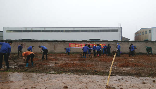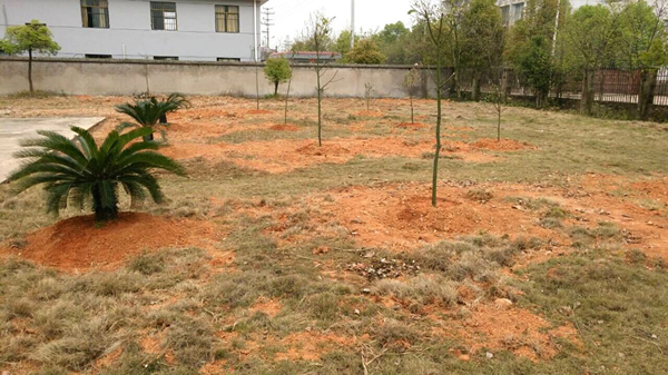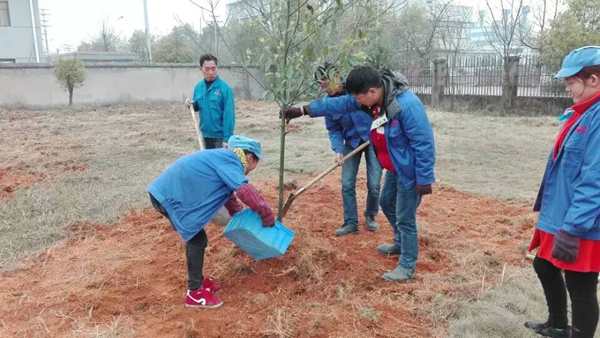 What a fine day today, it was particularly suitable for planting trees. At 8:30 am, people gathered on time, the staff distributed trees’ brands and tools, everyone went to their responsibility area and began to plant trees. In order to let the small trees to get better nutrients, we specially prepared organic fertilizer. When planting trees, some fertilized, some held the trees, some filled soil, then a large field were full of small trees in a short time.